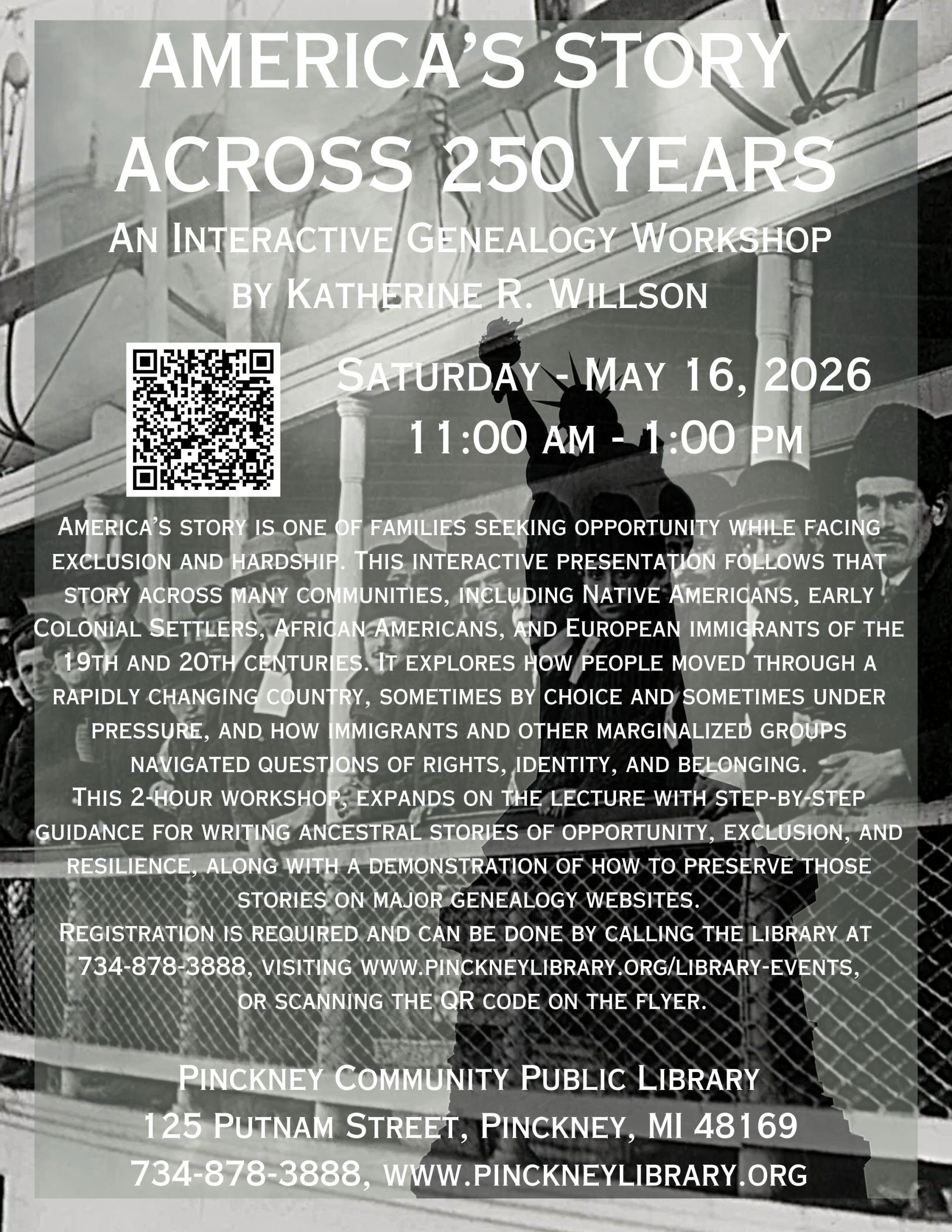 Registration is required. Sponsored by the Friends of the Pinckney Library.
